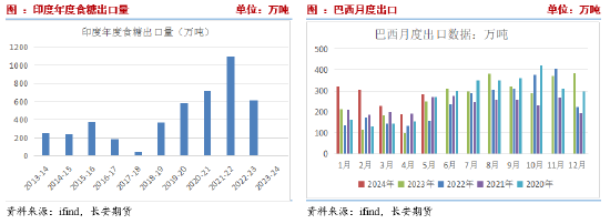 2024-2025榨季全球食糖供应盈余为主流预期,过剩量维持在80-600万吨不等。但近期巴西产量存疑,后续需持续关注产量变化。出口方面,为保证国内食糖消费与乙醇生产需求,印度本榨季采取限制出口政策,市场预计本榨季难以放松出口政策。泰国的甘蔗产量正在恢复,但仍低于历史水平,据Datagro估计,今年泰国的食糖出口量将增加200万吨,达到720万吨,但仍落后于巴西。