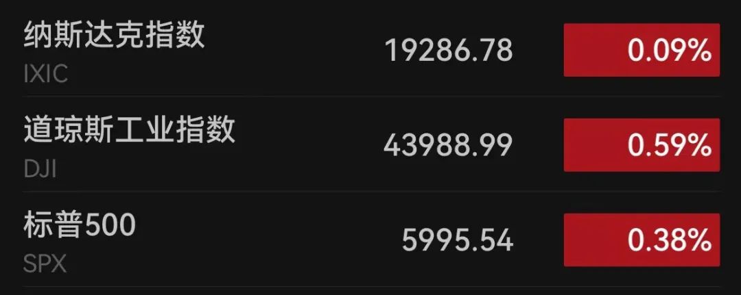 当地时间11月8日(周五),美股三大股指集体收涨。截至收盘,道指涨0.59%,纳指涨0.09%,标普500指数涨0.38%。三大股指均续创历史新高,标普500指数盘中一度越过6000点大关。