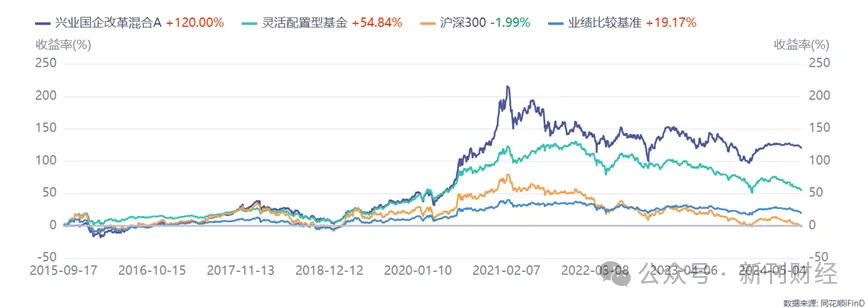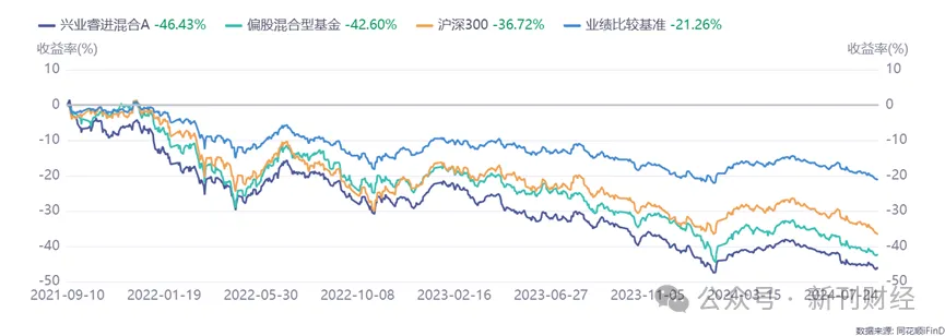 频繁的交易不仅提高了基金的管理成本,还使投资策略的方向变得模糊不清,导致投资者的信心进一步下滑。  两个接任基金经理业绩均不佳随着钱睿南的离职,兴业基金增聘了邹慧和刘方旭接管兴业兴睿两年持有期混合基金和兴业均衡优选混合基金。这两位新任基金经理在基金行业也有着丰富的管理经验和深厚的专业背景。邹慧自2020年加入兴业基金以来,主要负责公司权益投资部的管理工作,曾在多家知名券商和公募基金担任研究员和策略分析师。尽管邹慧在过去的三年中积累了一定的管理经验,但其代表作兴业研究精选混合基金的回报率为1.14%,相较于市场上的其他同类产品,表现相对平淡。下图是兴业研究精选混合A的净值曲线: