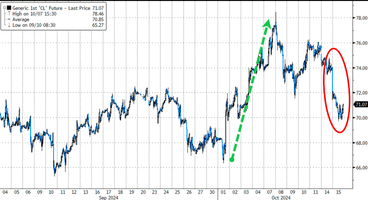 此前,在中东局势升级的背景下,投资者曾越来越担心美国物价压力将再度攀升,而且,不论谁当选下任美国总统,都可能会推出推升通胀的政策。不过,本周以来油价的回落,已在很大程度上缓和了这层忧虑。