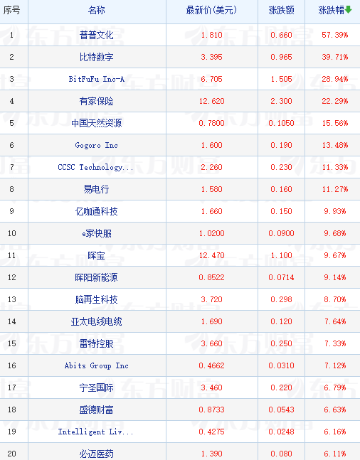 领涨中概股列表: