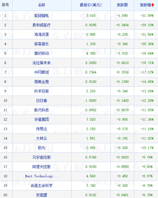 领跌中概股列表: