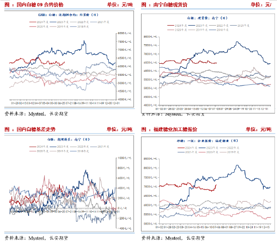 2024-2025榨季全球食糖供应盈余为主流预期,过剩量维持在80-600万吨不等。但近期巴西产量存疑,后续需持续关注产量变化。出口方面,为保证国内食糖消费与乙醇生产需求,印度本榨季采取限制出口政策,市场预计本榨季难以放松出口政策。泰国的甘蔗产量正在恢复,但仍低于历史水平,据Datagro估计,今年泰国的食糖出口量将增加200万吨,达到720万吨,但仍落后于巴西。