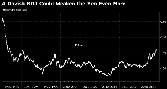 这将是日元兑美元在最近几天跌破161日元(自1986年以来未见的水平)后下一个重大里程碑。日元今年下跌12%,令日本面临干预市场以支撑日元的压力,日本央行可能也得削减购债的规模。
